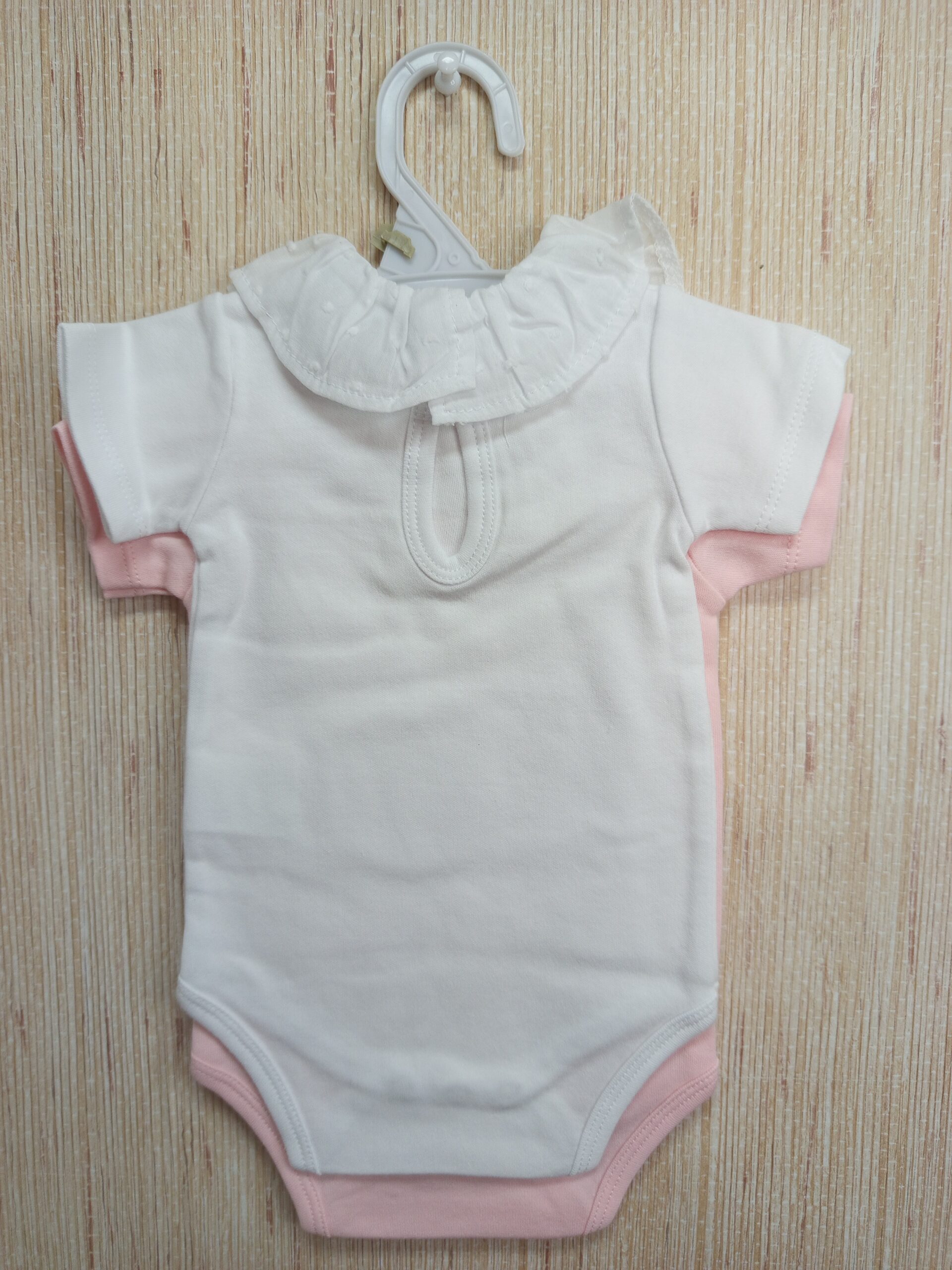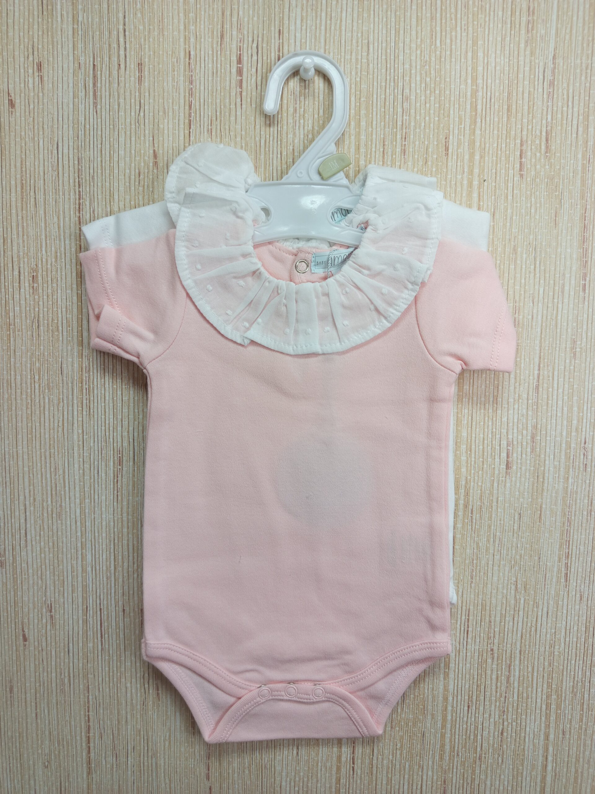 BODYS BEBE ALGODON CON CUELLO VOLANTE EN PLUMETI VIENEN EN PAQUETE DE DOS UNO COLOR ROSA Y COLOR BLANCO TALLAS DESDE 1 MES HASTA 24 MESES