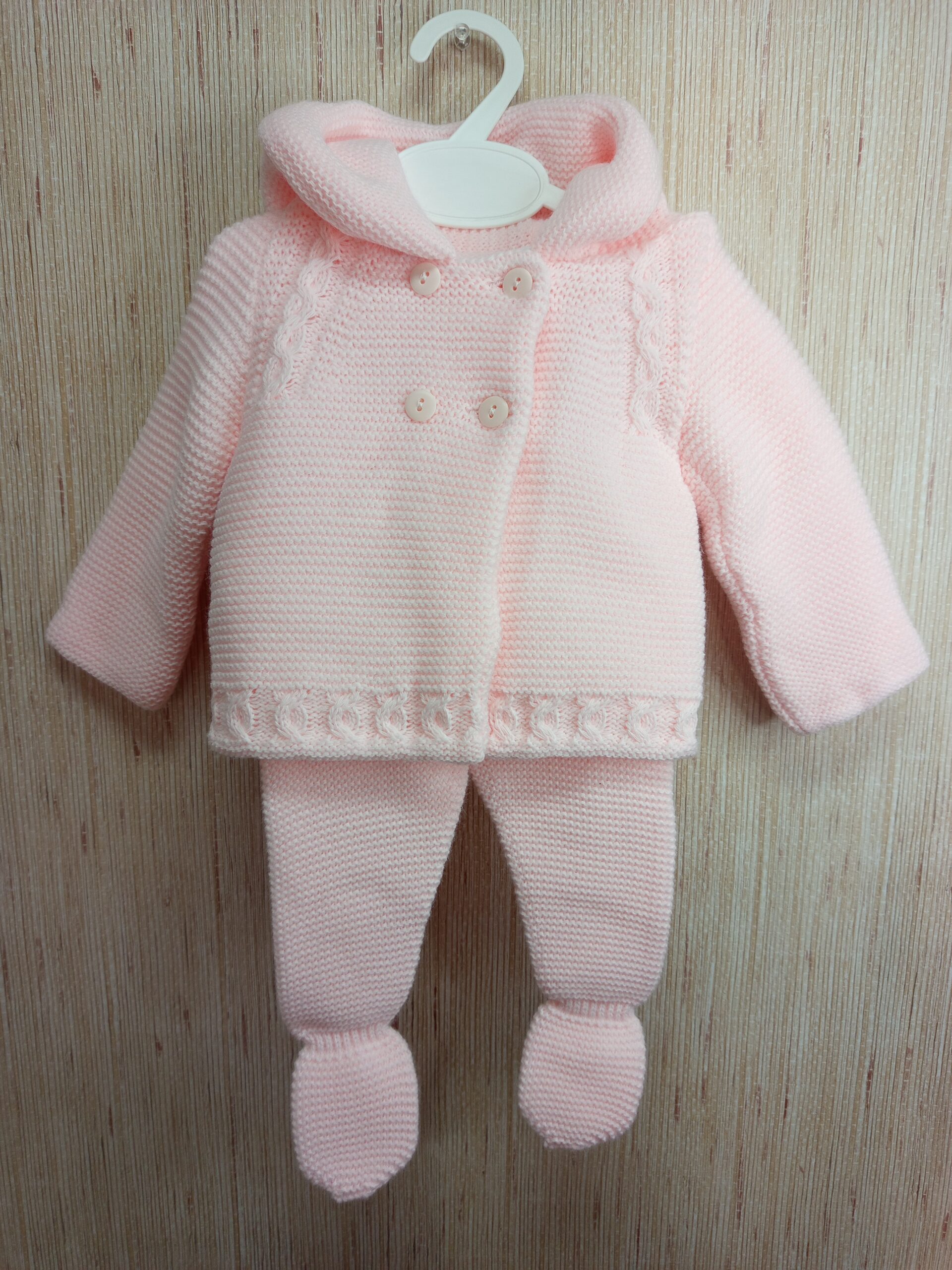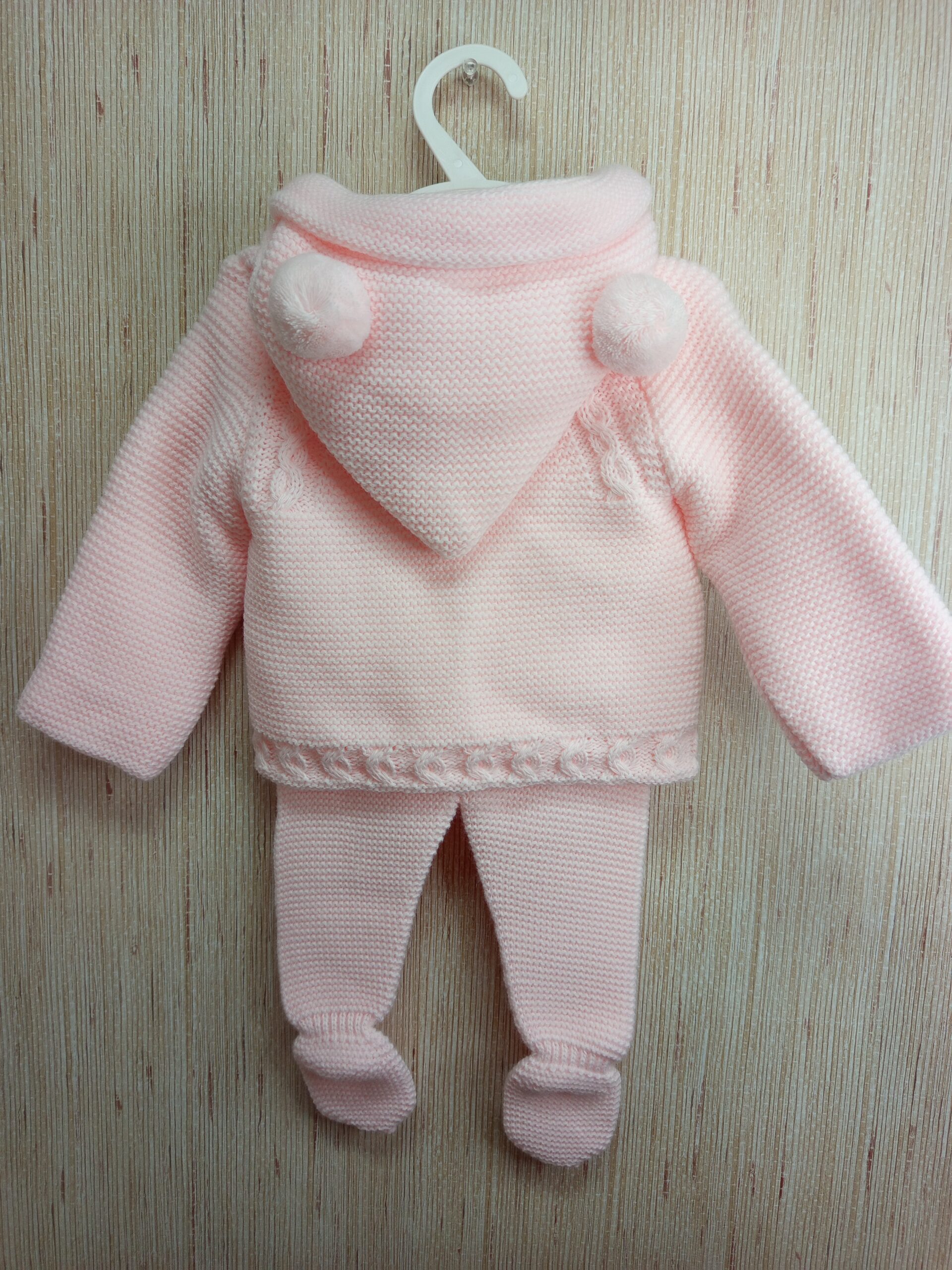 CONJUNTO SAN FRANSISCO COMPUESTO CON ABRIGO DE LANA Y POLAINAS DESDE 1 MES HASTA 6 MESES COLOR ROSA