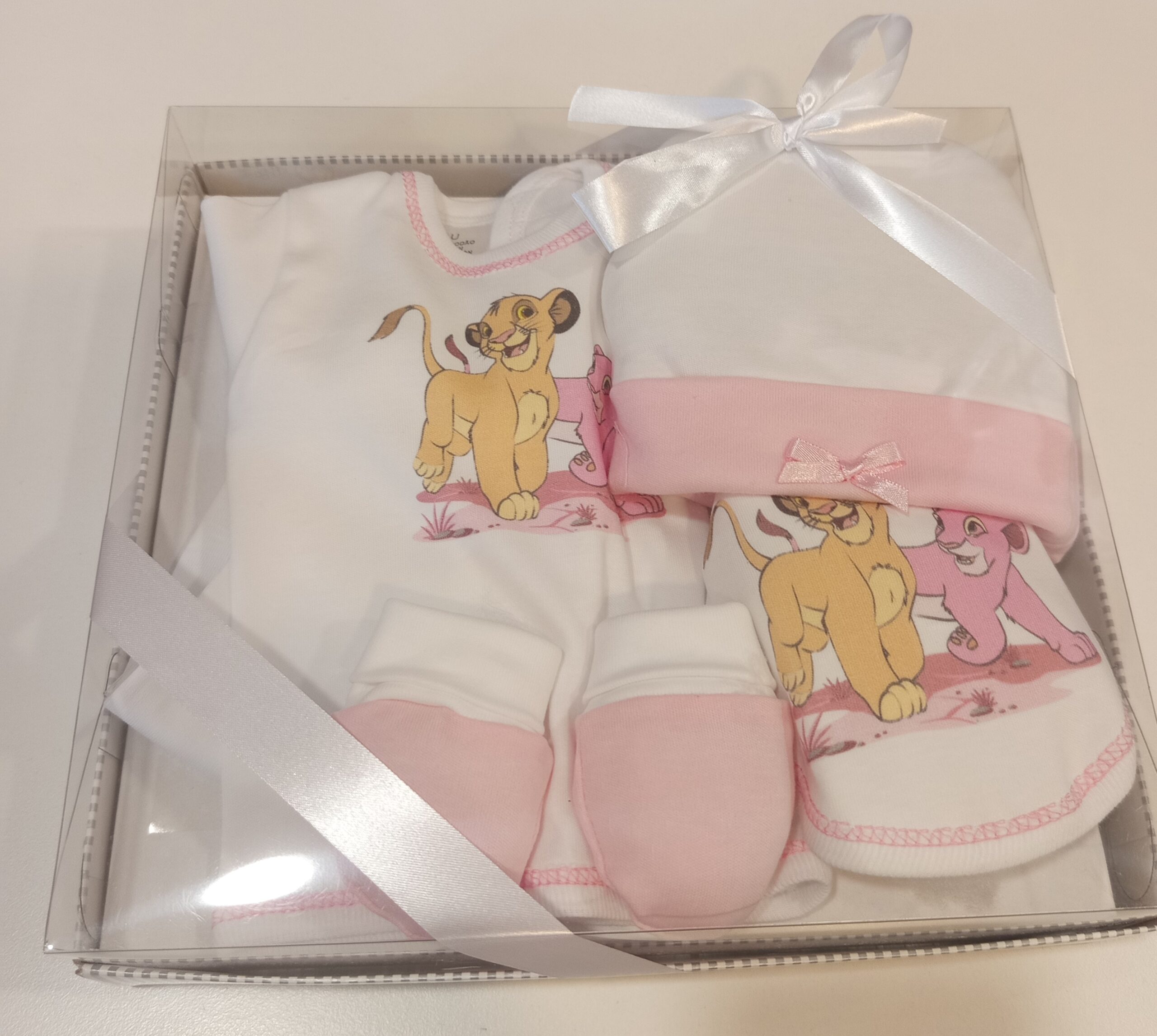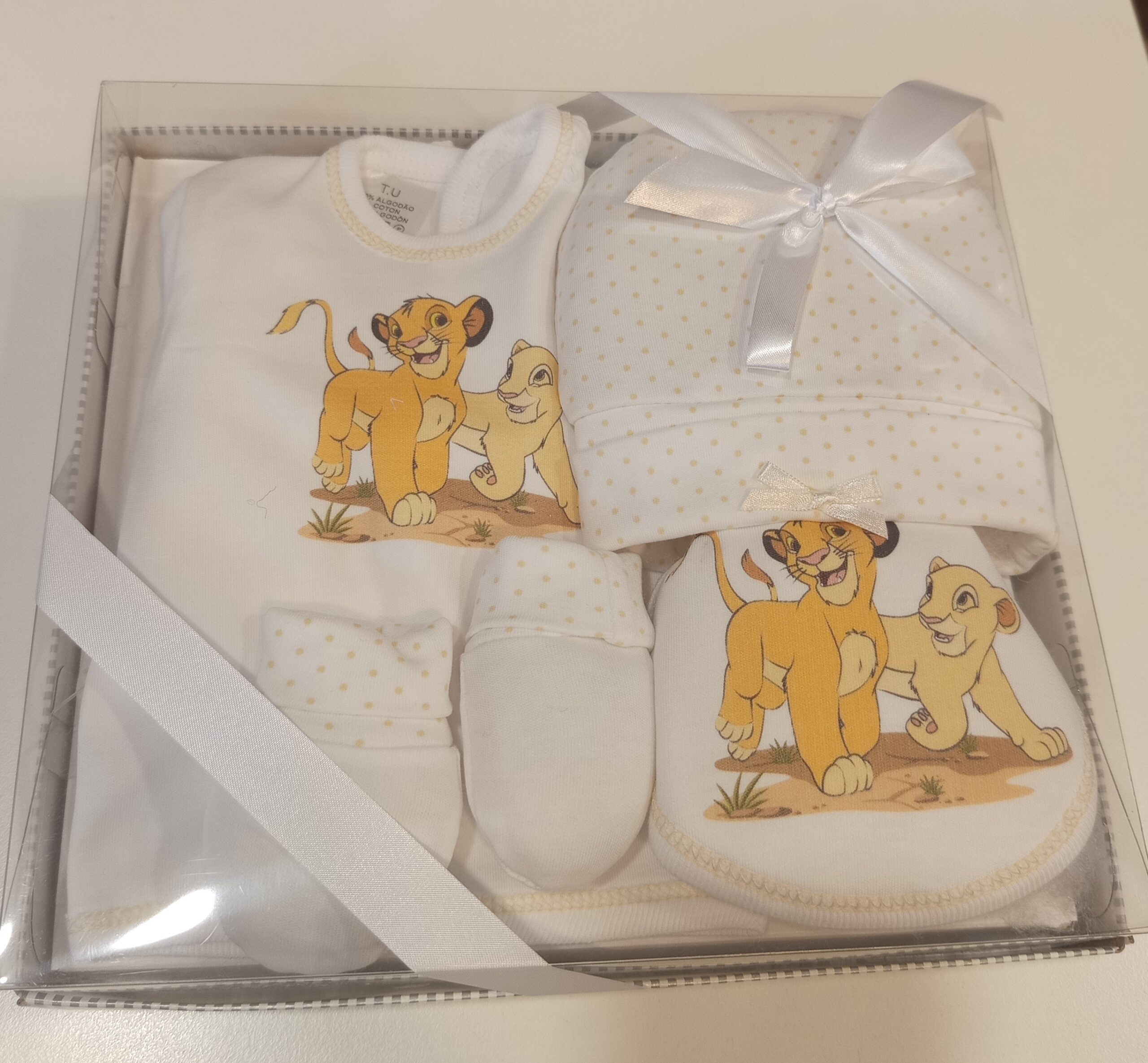 CONJUNTO DE 5 PIESAZ DE ALGODON BEBE RECIEN NACIDO ALGODON PRIMERA PUESTA CON DIBUJO REY LEON EN VARIOS COLORES DIBUJO EL REY LEON SET REGALO