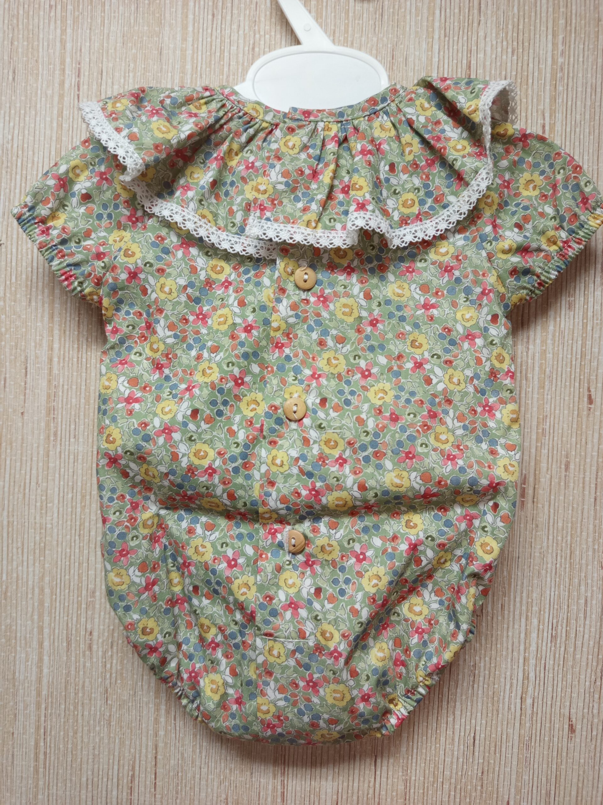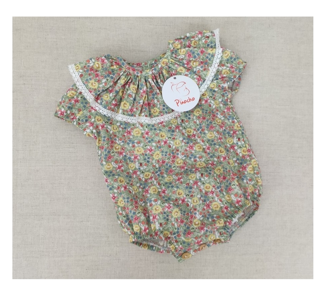 PELELE ESTAMPADO DE ALGODON 100% CUELLO VOLANTE ABOTONADO POR DETRAS