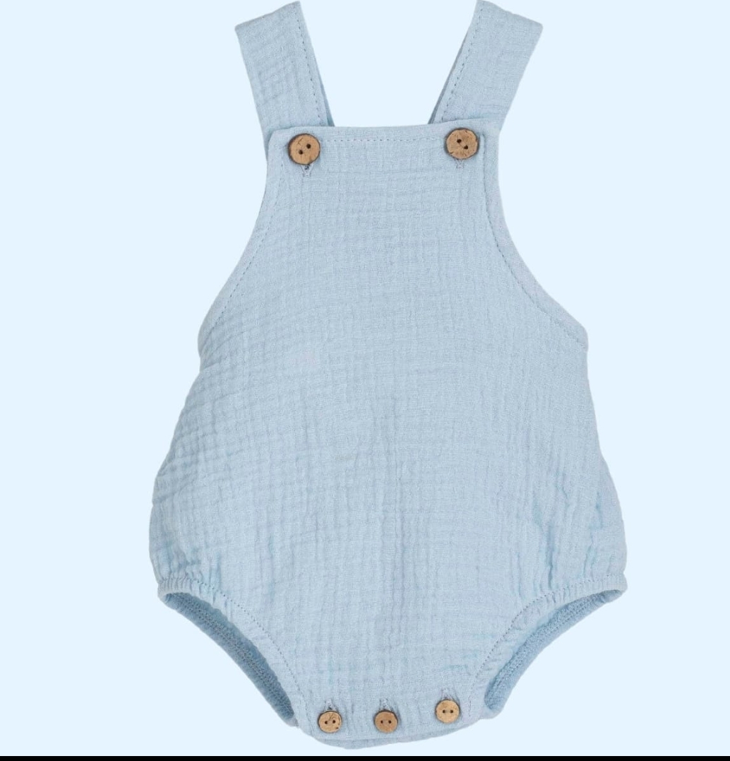 PETO AZUL CELESTE – DULZURA Y COMODIDAD CONFECIONADO EN TEJIDO GOFRE SUAVE AL TACTO Y TRANSPIRABLE PERFECTO PARA COMBINARLO CON UNA CAMISETA, COLOR AZUL CELESTE EMPOLVADO DESDE 1 MES HASTA 36 MESES